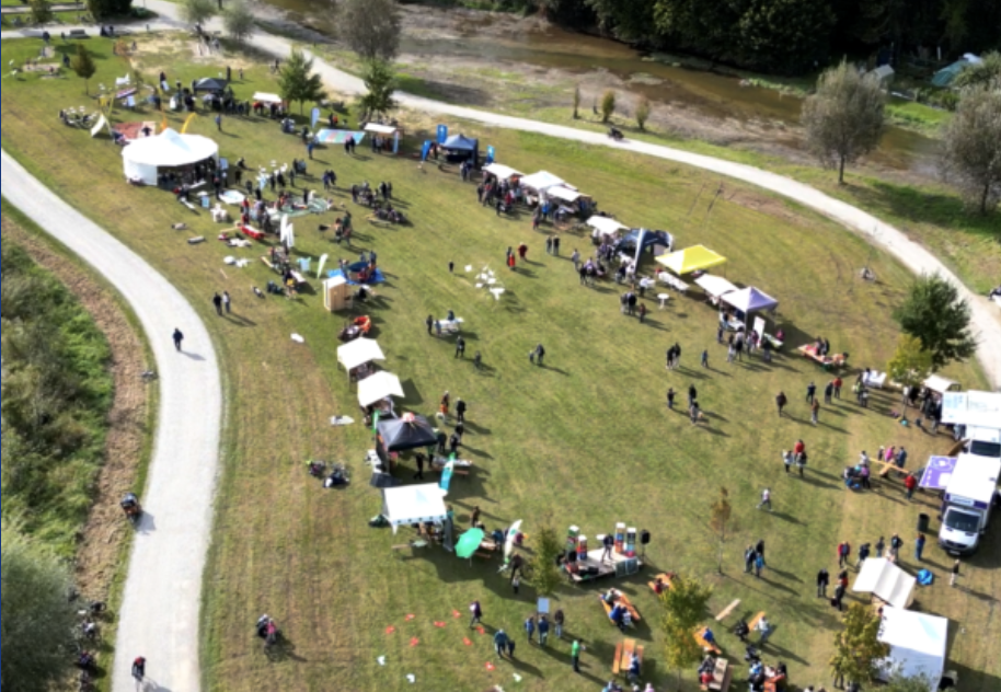 Schwer zu sagen, da gab es viele. Doof war, dass der ursprünglich geplante Termin buchstäblich ins Pfingst-Hochwasser viel. Aber als wir dann im September die future fair nachholten, war die Resonanz positiv, und alle Aussteller waren sich einig: Wir bleiben bei der Location. Der Aichacher Stadtgarten liegt im Grünzug an der Paar, der mit seinem Flugraben Teil des Hochwasser-Schutzkonzepts der Stadt Aichach ist. Die Verschiebung wurde zum Symbol für den Umgang mit Extremwetter durch den Klimawandel. Der Tag war entspannt, von Interesse und Partizipation geprägt … und die Profi-Schrauber vom Aichacher Repair Café kümmerten sich liebevoll um mein Festival-Klapprad.