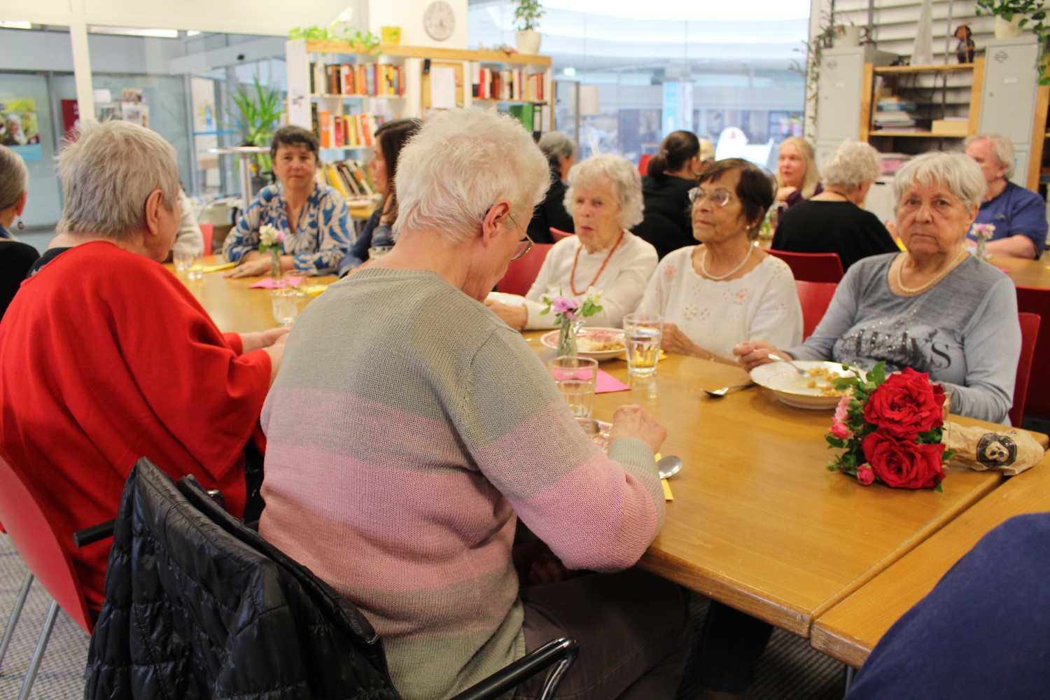 Von den wöchentlich 30 Portionen, die in der KUKA-Kantine übrigbleiben, profitieren Senior*innen und Jugendliche, die nicht immer eine warme Mahlzeit bekommen. Für viele ist der Austausch mit anderen ein Grund zu kommen, sodass sie auch nach dem Essen lange sitzen bleiben.