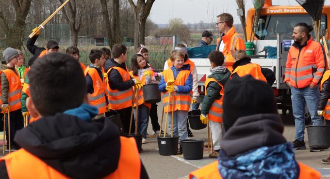 Die Temperaturen steigen, der Schnee schmilzt und was bleibt ist Müll. Zeit für einen Frühjahrsputz. Auch in diesem Jahr startet der Abfallwirtschafts- und Stadtreinigungsbetrieb der Stadt Augsburg (AWS) mit der Kampagne „Augsburg – Sauber ist in!“. Konkret sollen Straßenränder und Schulwege, Parks, Grünflächen und öffentliche Plätze, Flussufer sowie besondere Schmutzecken von liegengebliebenen oder achtlos weggeworfenen Abfällen befreit werden. Die Aktion will auch auf das Littering, also das achtlose Wegwerfen oder Liegenlassen von Abfällen im öffentlichen Raum, aufmerksam machen. Den Start machten die Schüler*innen der vierten und sechsten Klassen der Kerschensteiner Grund- und Mittelschule.